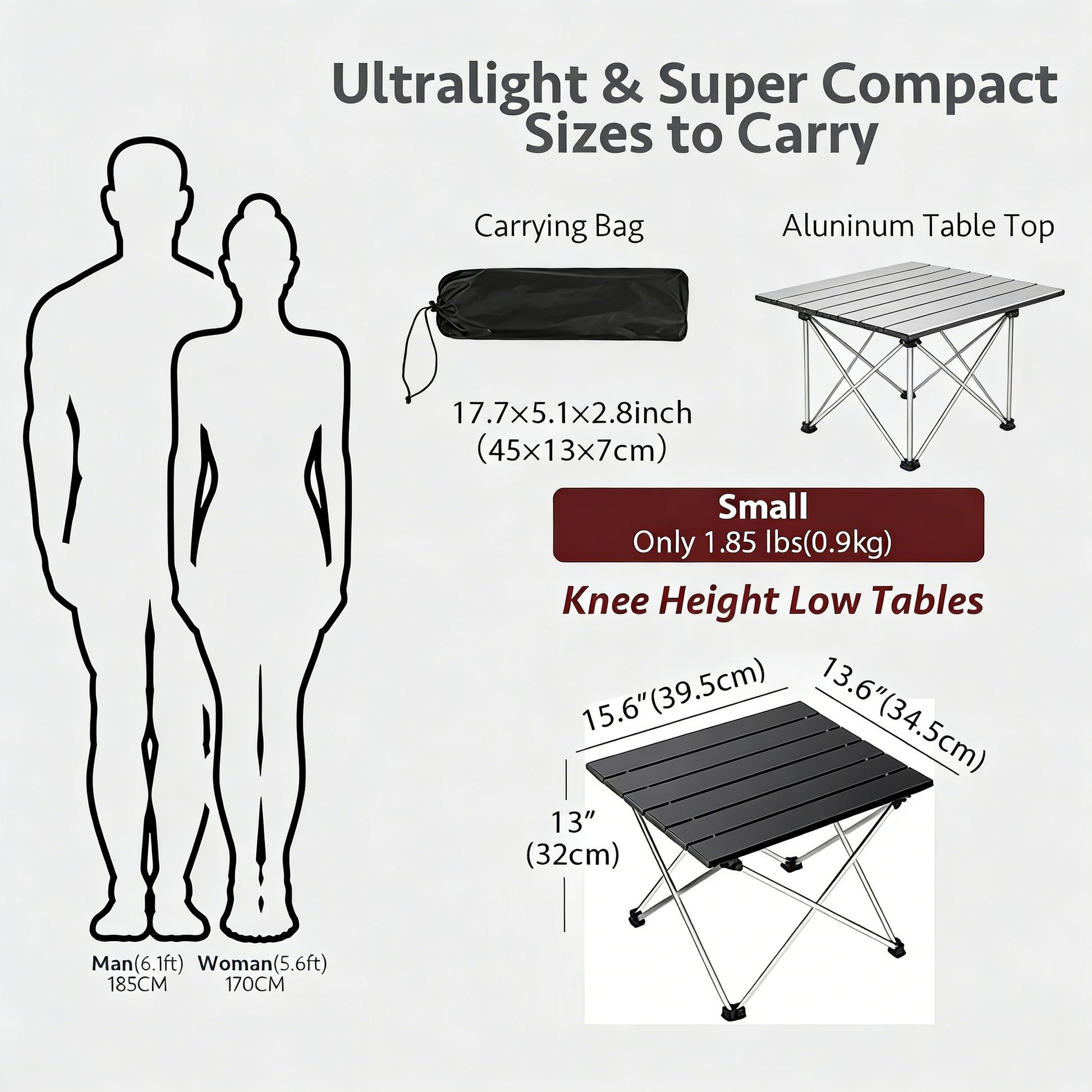 Portable Folding Camping Table Lightweight Aluminum Low Table for Picnic Hiking Beach