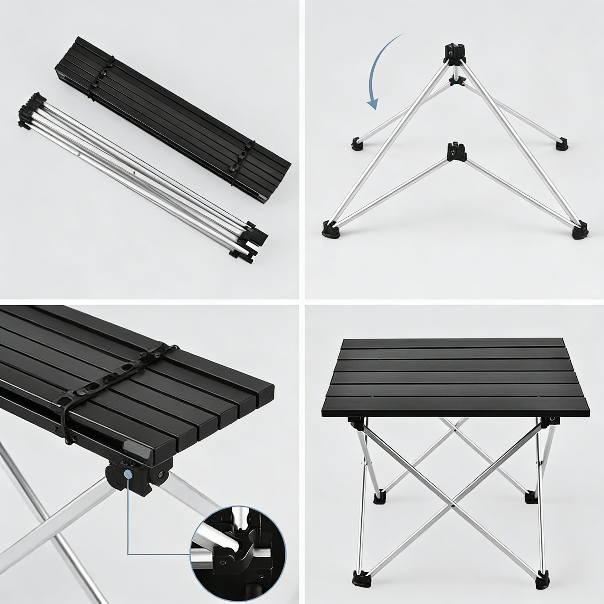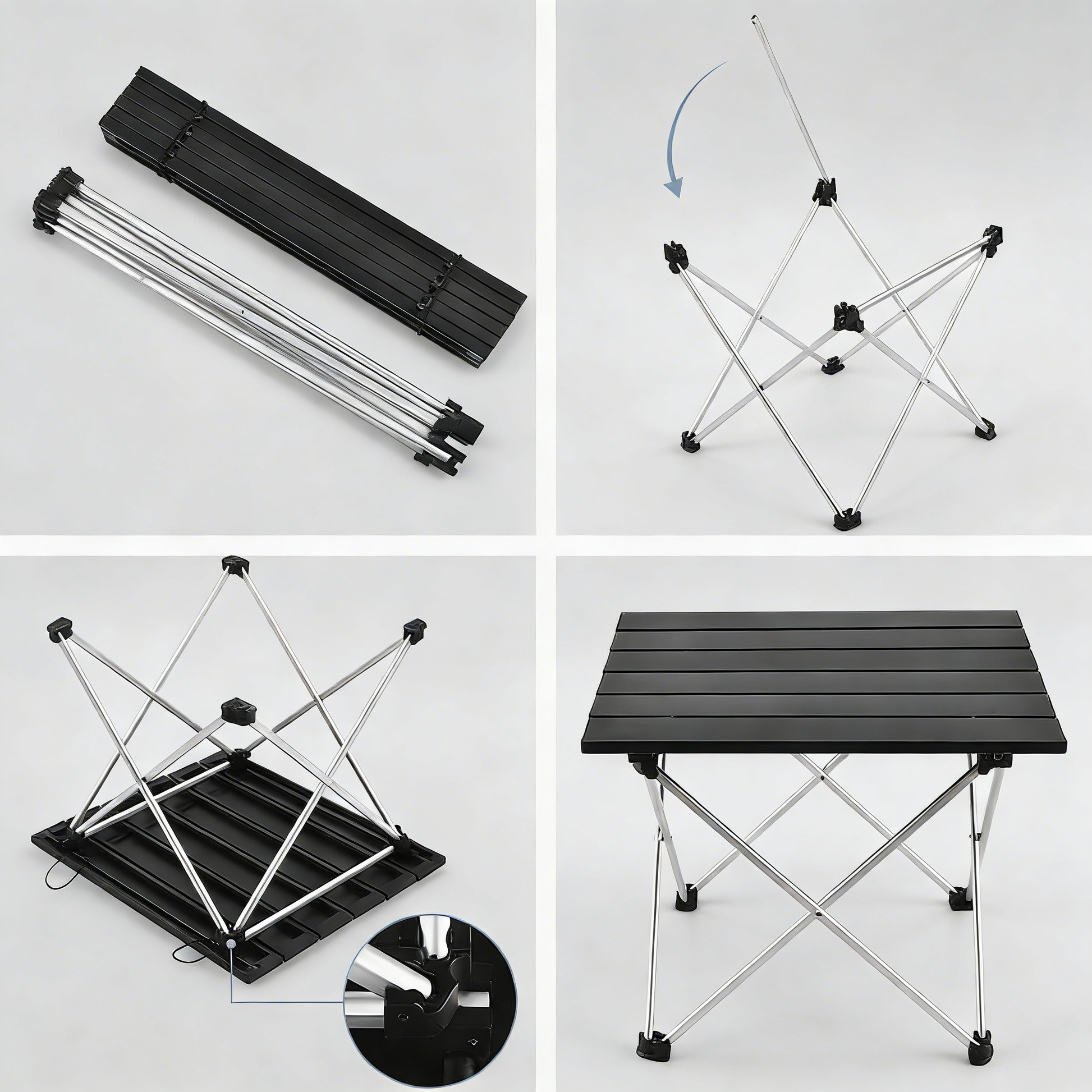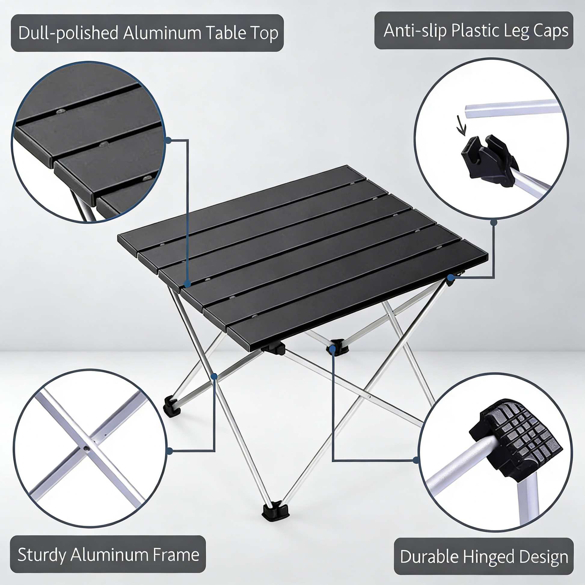 - Made of high-strength aluminum alloy with a matte finish tabletop, lightweight and rust-resistant